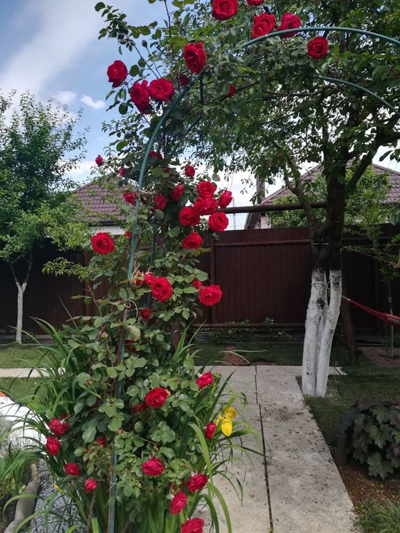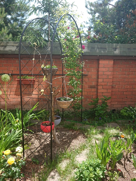 я не покажу, у меня арка голая до сих пор) Прошлогодние гиацинтовые бобы только-только вылезают, свежепосаженный лимонник ещё маленький совсем и ничего пока не обвивает)