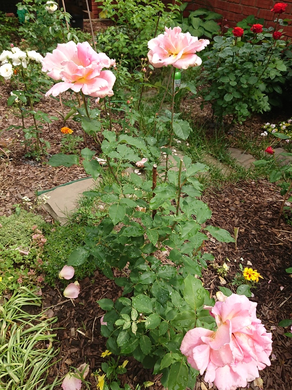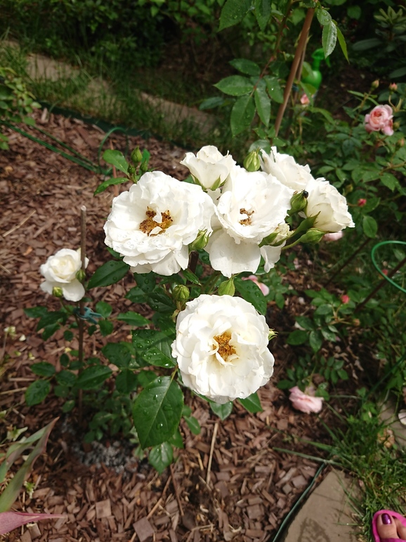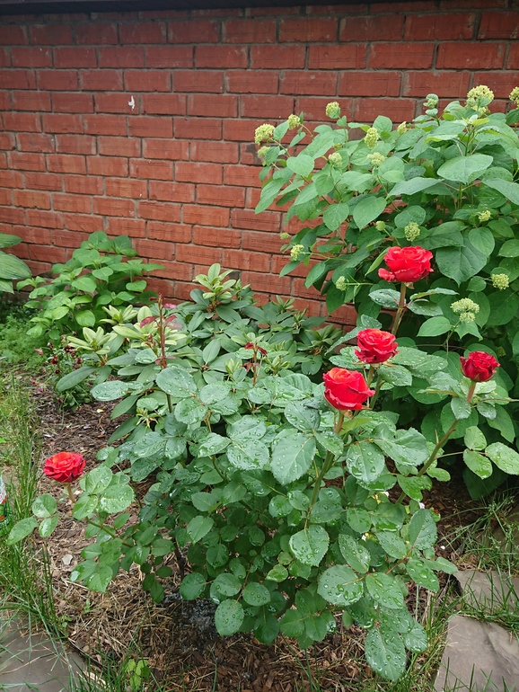 Моя любимка. Одна из самых неприхотливых роз. Имени не помню. Дождь прошёл, а ей хоть бы хны.