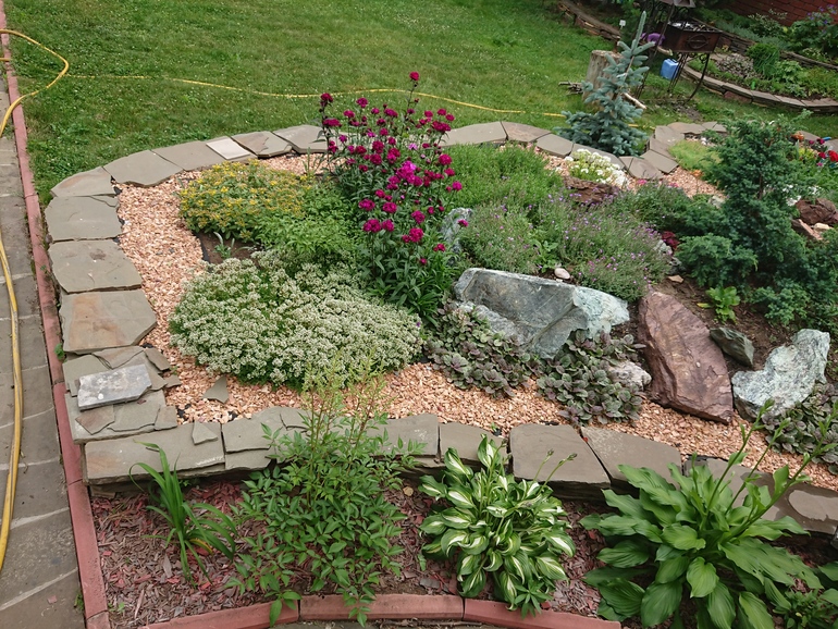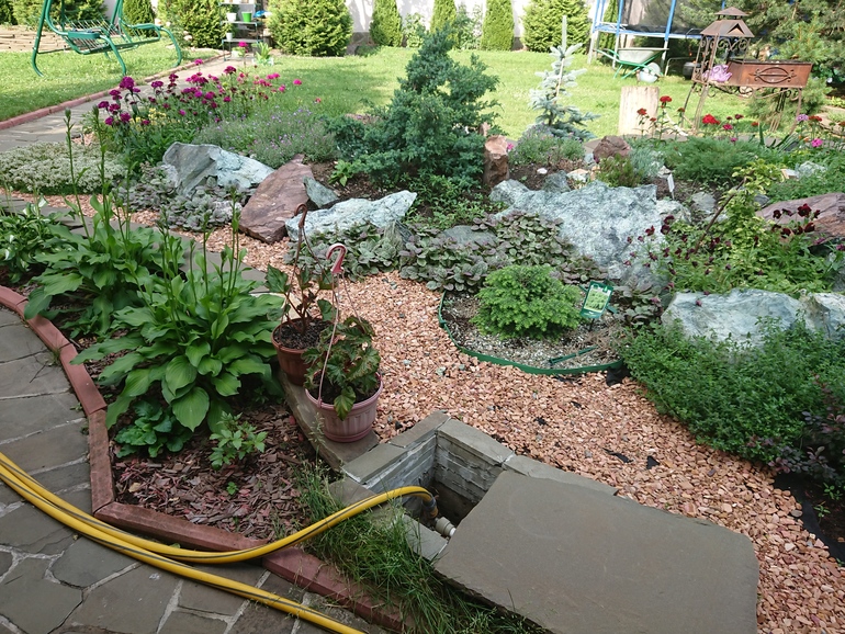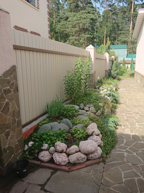 Согласна! Я в дом 3 года назад переехала. Здесь везде был типа газон. Но за ним так тяжело ухаживать и никакой красоты. Потом у нас кусок просел, получился уклон и мы решили сделать алипийскую горку. Получилась огромная. За то лето я сделала. Постепенно разрастутся многолетники и уже легче будет. Пока пустоту застелаю очитками, чтобы сорняки не лезли.