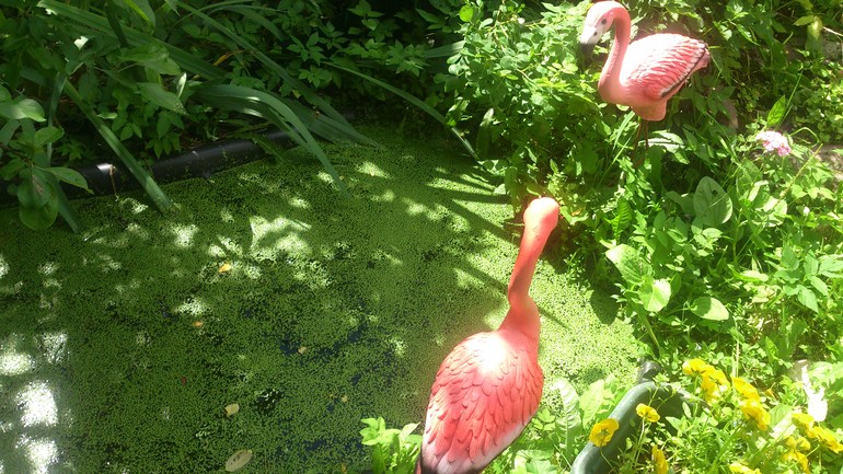 Ряска, конечно, чистит сейчас воду. И на этом ей спасибо. Но хочется красоты. А как через эти дебри проложить не пойму. Уж совсем "многолетнее запустение" загубить не хочется. Там сквозь хосту и можевельник карликовый и всякие мелкие красоты пробиваются. Только хоста всё пространство занимает в итоге(. Как облагородить с минимальными потерями?
