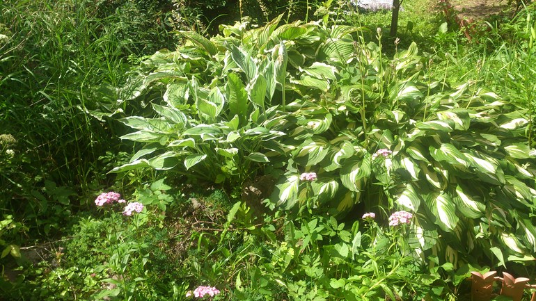 А она есть. Хоста заплодила всё пространство. Хочу поставить фонтан. Но "убивать на корню" хосту жалко. Есть у кого пример "прорывания" жолоба между растениями?