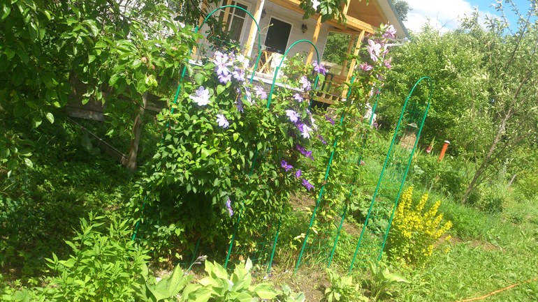 Клематисы ещё и по форме цветка отличаются. У меня ещё есть цезарь. Самый ранний и цветок красивый, но розовый.