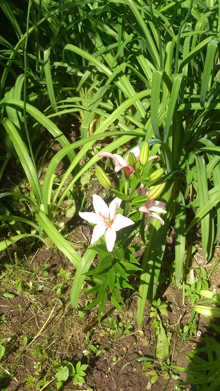 Растут, радуют глаз. Правда наш дедушка (мой папа) с пылу с жару скосил белый (четвёртая "мёртвая" сетка). Но, слава Богу, не до конца, он очухивается. На следующий год, верю и надеюсь, будет радовать глаз. Хочется добавить ещё (место перед первым есть). Какой цвет ещё можно найти?
