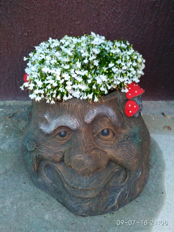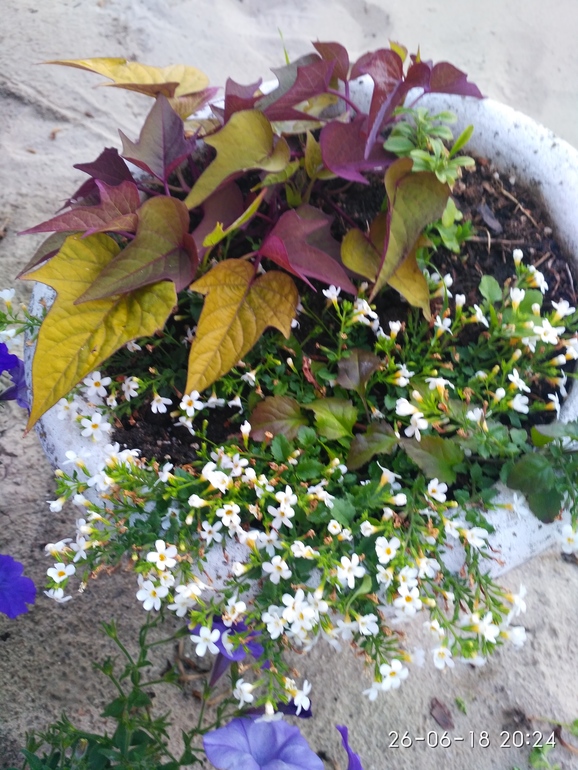Ипомея не цветет, она листвой красивая, несколько расцветок. Своровала (ущипнула и укоренила ) из Леруа, она выжила. Посмотрите в Яндексе картинки Ипомея Бадат. Она в композиции прикольно смотрится.