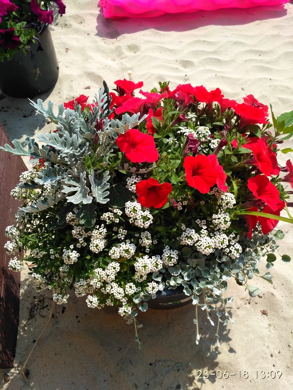Очень много вегетативной петунии, калибрахоа. А алиссум какой!!! Я семена освоила, на следующий год думаю закажу черенки, буду искать поближе к дому, в посылках не все доходит.