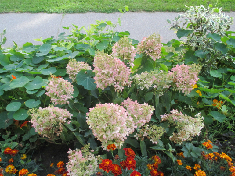 Хвалюсь, мой участок.Цветы в этом году радуют своим цветением,настурция разрослась,гортензии стали розовыми,цинии продолжают цвести с мая месяца.Ну, а бархатцы вообще цветут не переставая.Много фото.