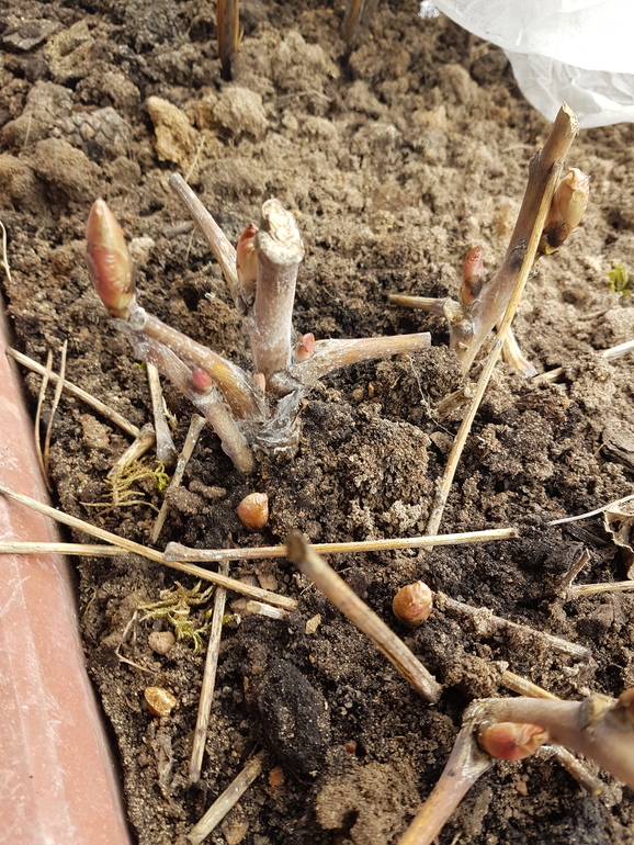 Плетистая перезимовала хорошо и вся зеленая стоит...в вот обычные...некоторые почернели...но внизу зеленые. Значит оживут. И на некоторых черных стеблях видны почки.