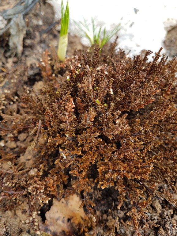 Вереск зимовал под пластиковым горшком....интересно выживет? На вид какой то безжизненный. Но внутри чуть зеленое виднеется.