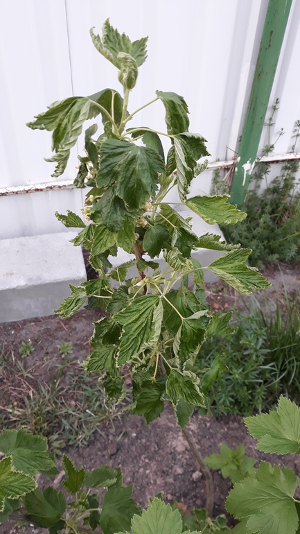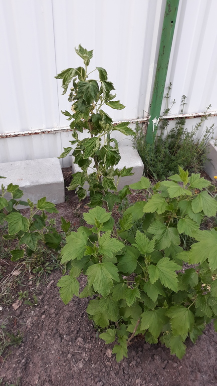 Смородина. И рядом кстати красной куст. Был постоянно корявый.Его должно было по идее в первую очередь накрыть болезнью,тк слабый. Года 4 стоял 2 ветки ни прироста и плодов. А уж сколько он так жил до меня и не знаю.Никакущий. А в этом году столько прироста и завязей.