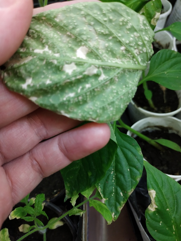 Они такие мелкие, что их практически не видно. У меня так в прошлом году было и в этом, благо в этом я рано их заметила и все фитоверм ом побрызгало, но сейчас они появились снова, на домашних маминых огурцах... Бывает на вот этих пятнвх они оставляют как бы чёрные мелкие точки.