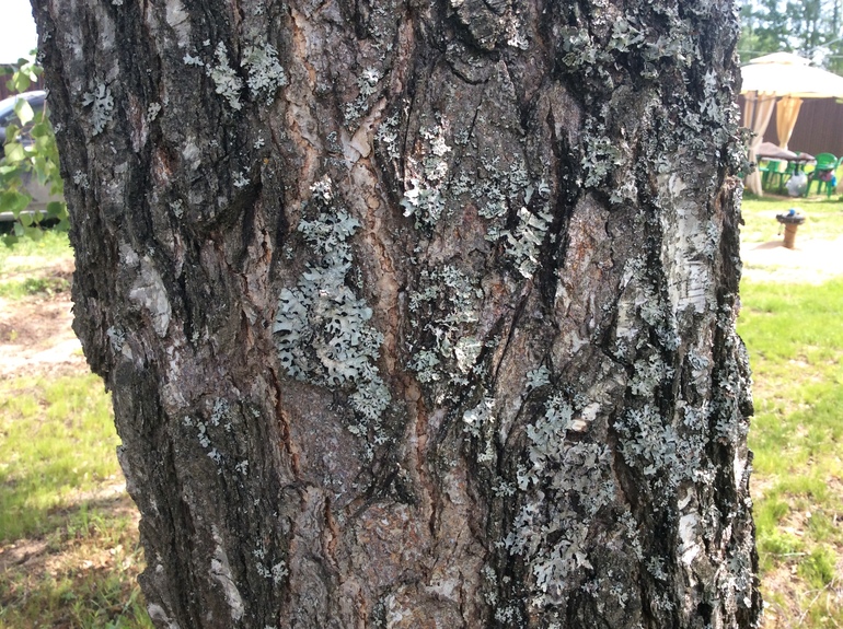 стоят две березы в метре друг от друга, на одной почти нет свойственной березе коры, и очень много этого голубого лишая, а вторая имеет обычный здоровый вид. И ветки со здоровой березы не падают. Мои опасения еще и в том, что недалеко посажены плодовые деревья и как то не очень хочется их заразить этой штукой..
