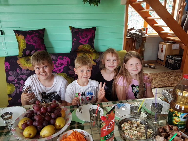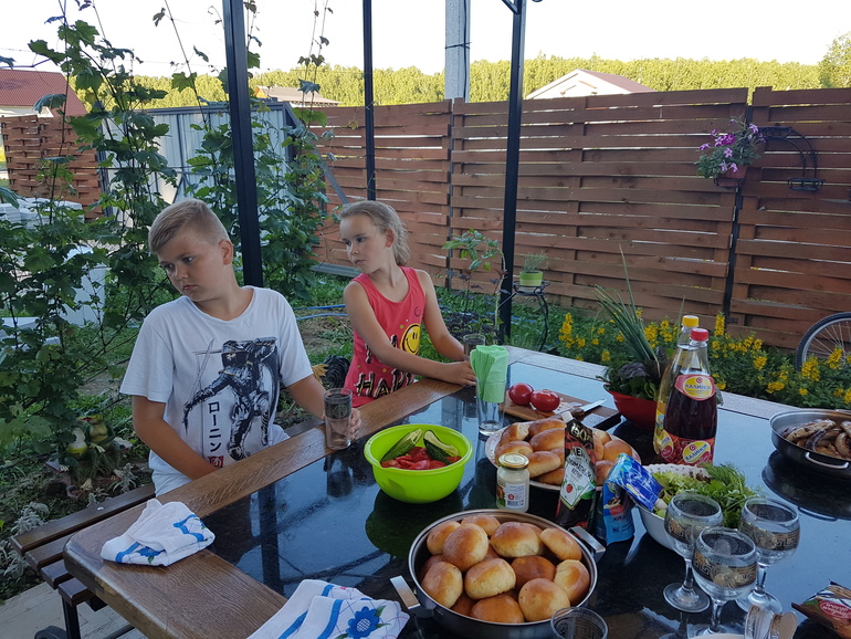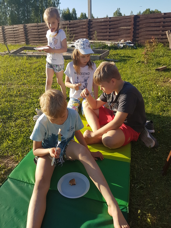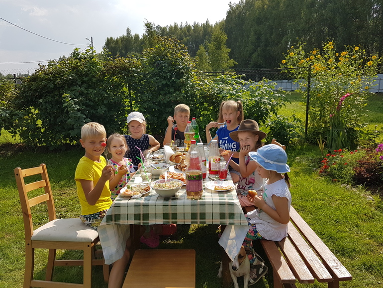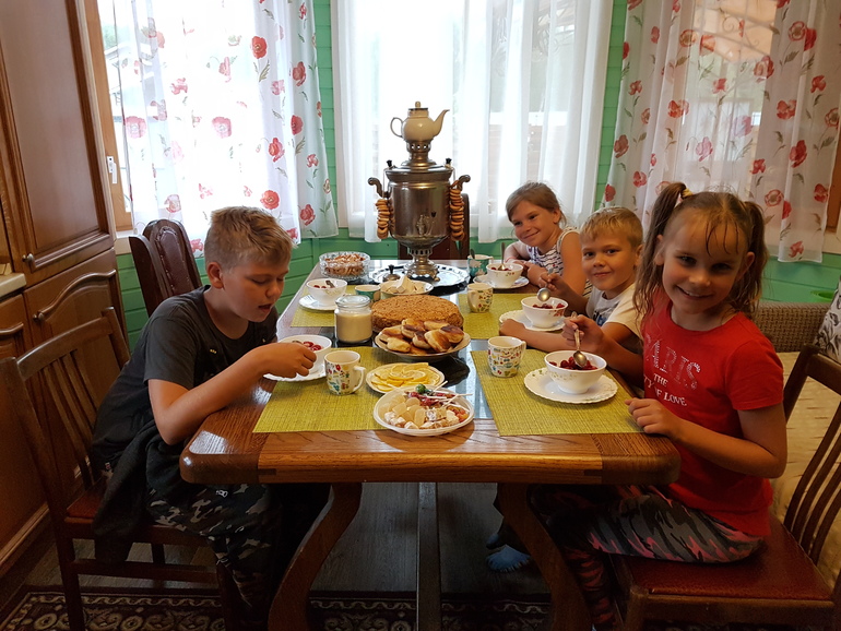 То колбаски куриные им накрутят и пожарят на гриле, то чай из настоящего самовара с малиной и свежеиспеченным медовиком. А они в ответ устраивали нам представления))) Танцы, песни, акробатика)