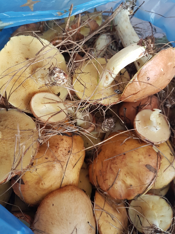 Гуляя утром с собакой по нашим окрестностям, мы случайно зарулили посмотреть грибы. И обалдели! Мореее маслят. За полчаса прогулки мы с Маратом набрали 2 ведра.