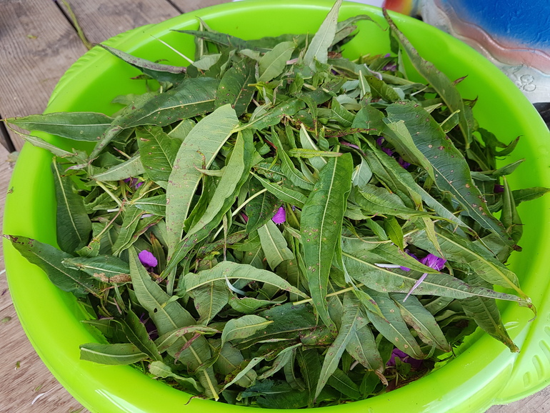 Делали чай. Все достаточно просто. Отделить листья и цветы, хорошенько их перетереть это самое муторное) чтобы они выделили сок. потом я делала двумя способами. Первый - просто закладывала на ночь в эмалированную кастрюлю и накрывала мокрым полотенцем (для ферментирования) а второй - просто напихивала целую стеклянную банку, закрывала пластиковой крышкой и убирала в теплое и темное место а сутки. Запах из травянистого становился фруктовый. Значит все получилось и можно сушить.
