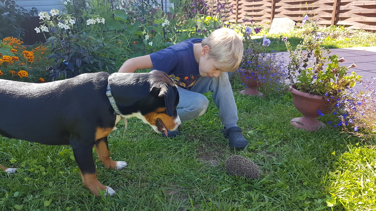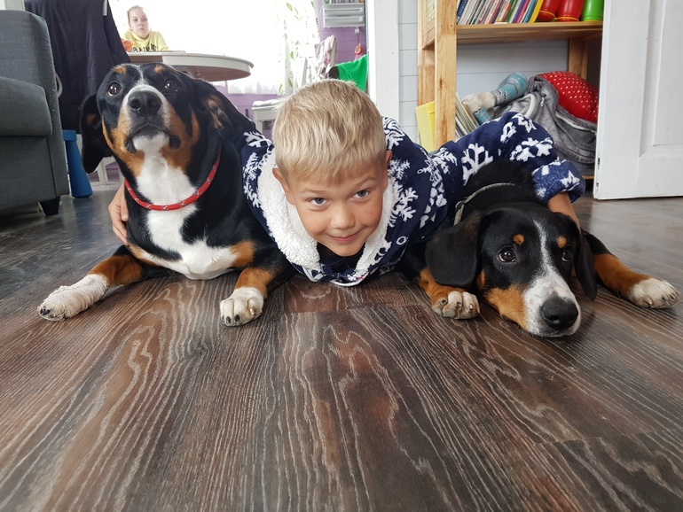 к нам приехали гости с мамой и бабушкой Каса (собаки) И для Марата наступило абсолютное счастье)))) Он мечтал о одной собаке а тут целых 3!!!))))