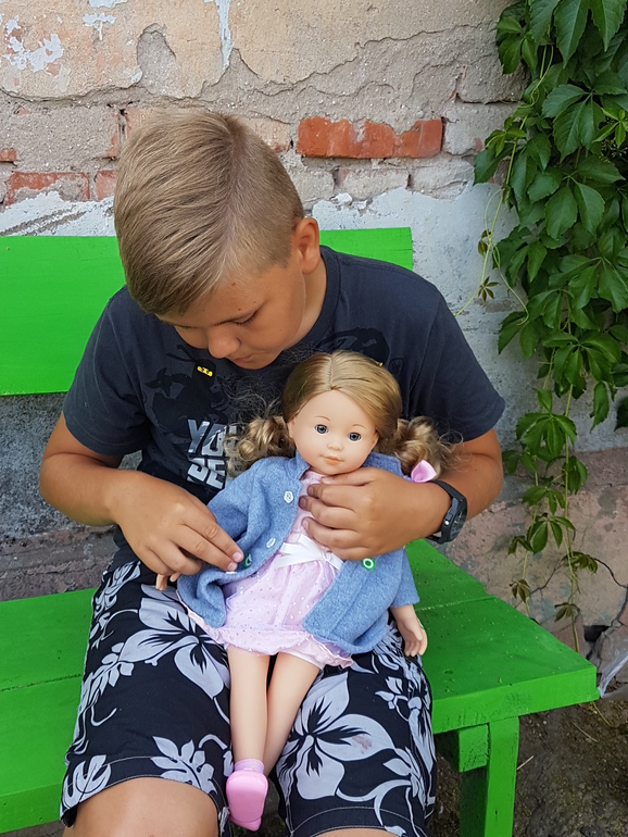 Даня впервые посмотрел что такое интерактивная кукла))))) (которую мы подарили моей племяшке) Говорит что скукота)))) И лего интересней))))