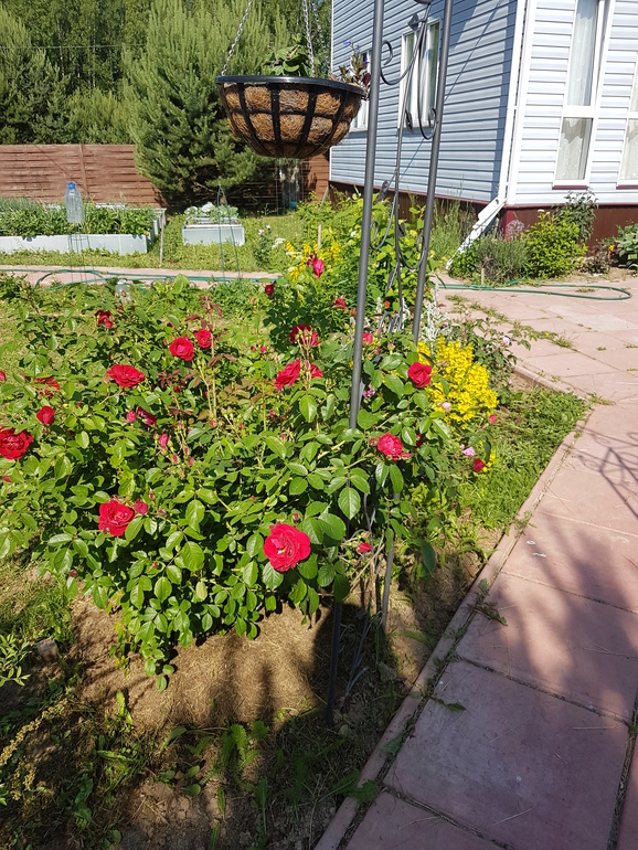 Плетистая роза зацвела тоже как то быстро и обильно (сейчас она выше меня ростом)