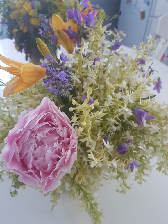 Дети приносили мне какие то потрясающе ароматные букеты. Я даже не знаю как называются эти цветы ( но кто то мне сказал что это лесная фиалка) пахнут как лилия на вееесь дом))))