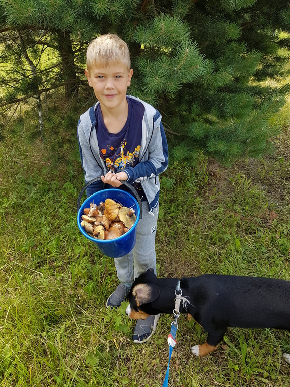 В итоге каждое утро Марат брал ведерко и шел гулять со мной) При этом каждый раз набирая грибы)