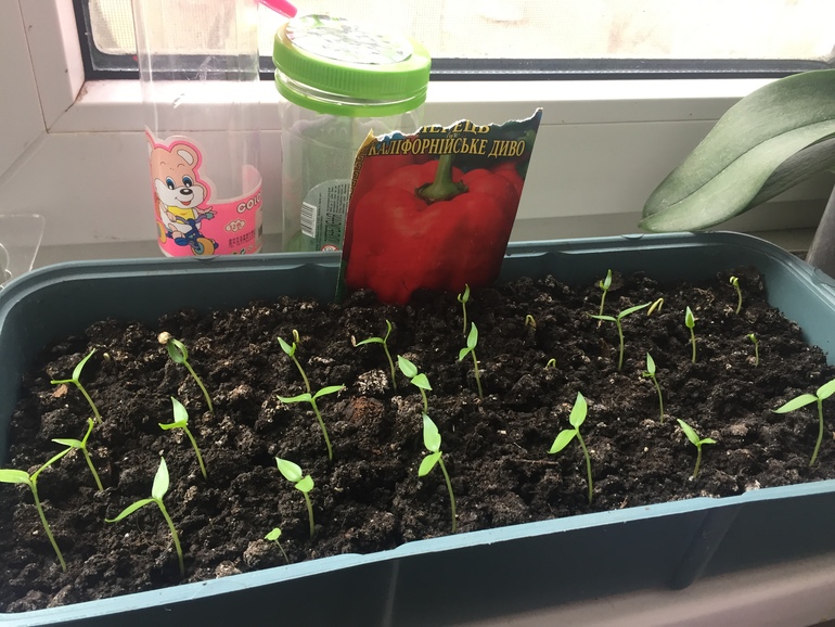 Дождусь всех всходов и добавлю им земли. Покупаю готовую смесь на рассаду, но смотрю, чтобы торфа было поменьше, у меня в нём растения гибнут.