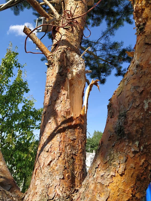 У вас на участке? Я бы вообще спилила эту сосну. Раз ее сломало,значит уже дерево гниет изнутри и может упасть в любой момент