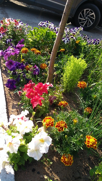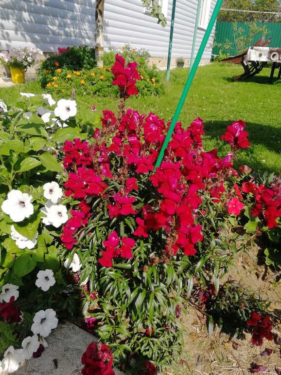 открыла для себя львиный зев. Купила в ашане, вошёл весь. Натыкала по клубам, а он вон какой красавчик, в следующем году сделаю полоской длинной.