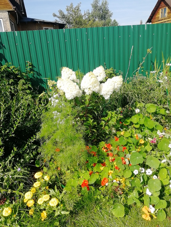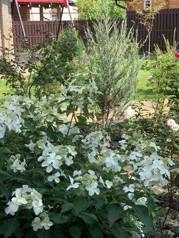 Черешковую выбросила. Метельчатую сортовую тоже выбросила. Растёт, как монстр, цветёт некрасиво, никаких шапок не было. Древовидная белая, как растрепыш, гнется к земле, некрасиво. Я её уже всю обрезала. Цветы уже не декоративны.
