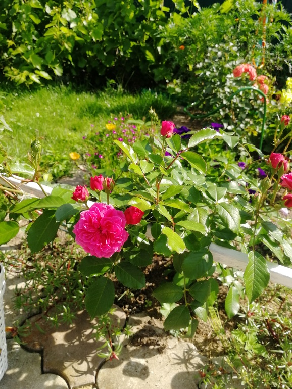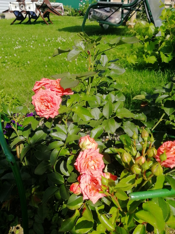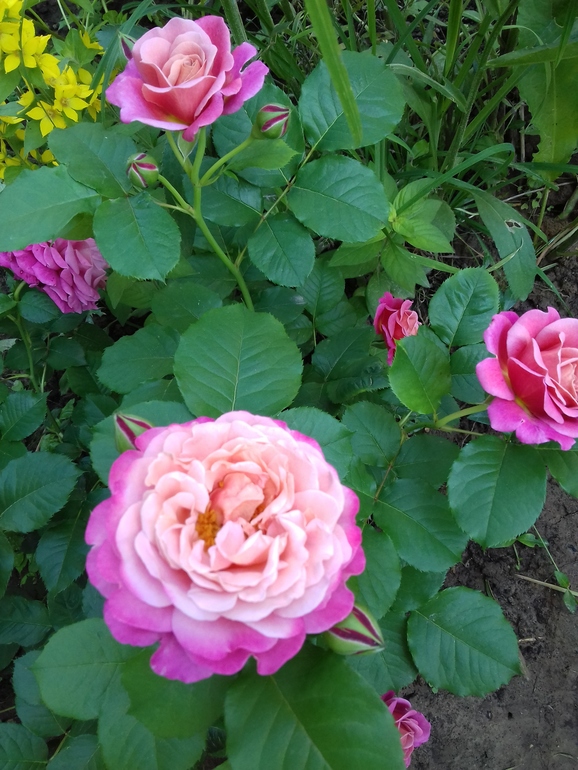 Помпонелла - красотка и неприхотливая ( тут уже некоторые бутоны отцветают). Роз вообще безумно много красивых, но я их боюсь с их болячками . В этом году купила спрейки и 3 чайной-гибридные, посмотрим что из себя их вырастет в следующем году.