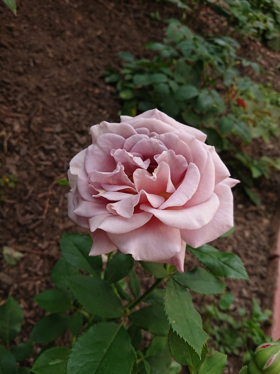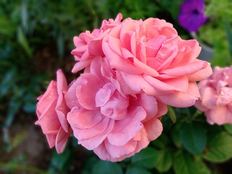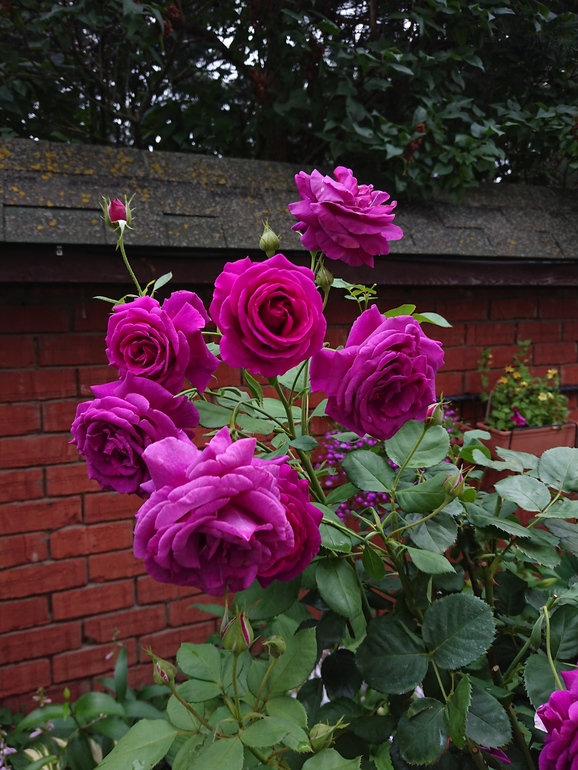 Нет, так сильно чтобы в фиолетовый она не уходит, немного сиреневого оттенка добавляется, цветы очень крупные и одиночные. Очень ароматная, но больше подойдет для второго плана - не компактный кустик у неё.