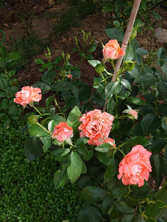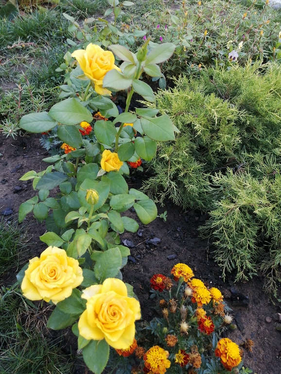 А если не высокие, то почвопокровные обильно цветущие розочки и рано зацветают.