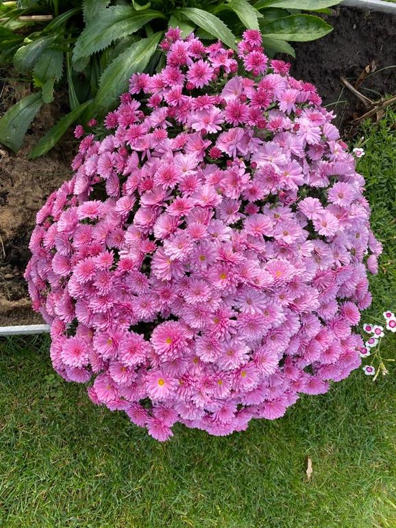 Это корейская хризантема. Нашла в интернете похожие, хотела посмотреть сорт, но названия такие вычурные (запомнила только липстик))) 😂
