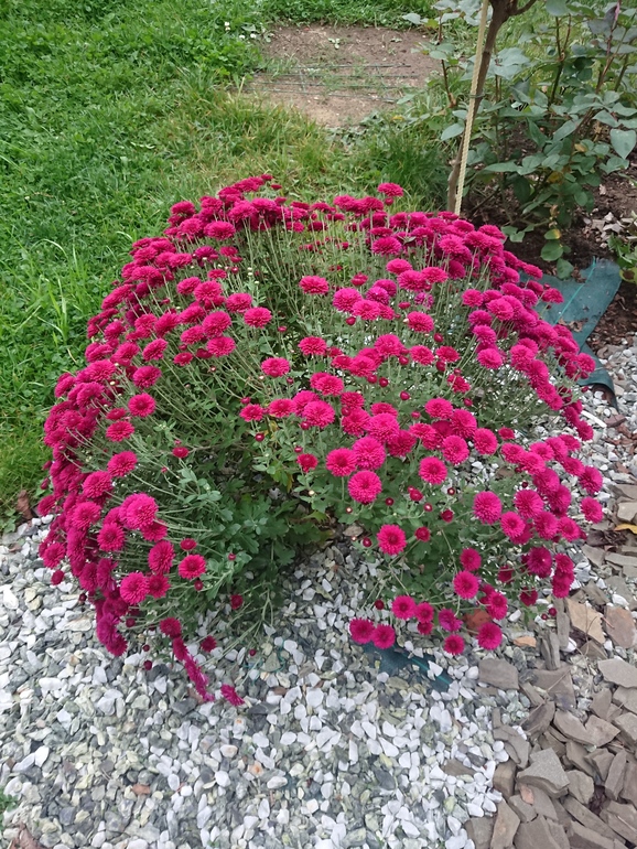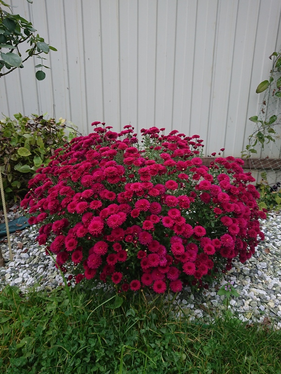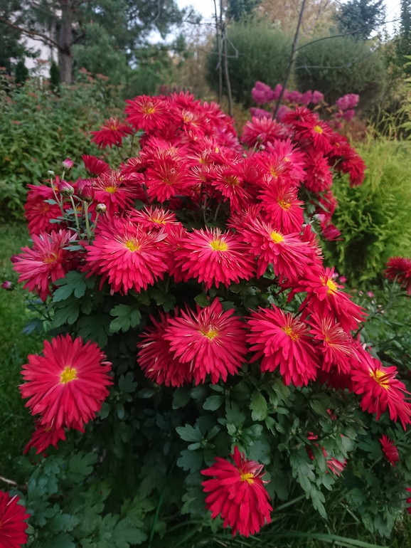 Я не особо люблю хризантемы. Они цветут тогда, когда я уже на улице не бываю и на даче теперь тоже редкий гость. Все заросло.