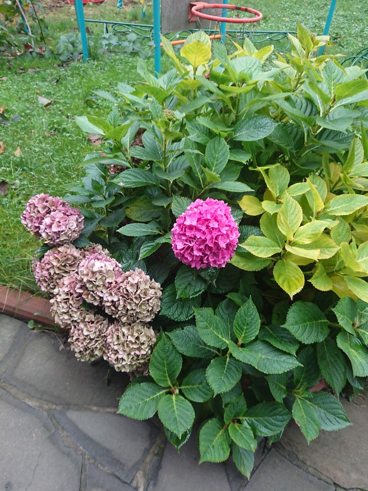 Я не знаю, что мне делать с этим кустом гортензии. Из-за прошлой тёплой зимы некоторые почки выжили и цвели, а новые не успели зацвести 🤷♀️🤷♀️🤷♀️ только одно соцветие на новом побеге зацвело. Куст неделю назад.