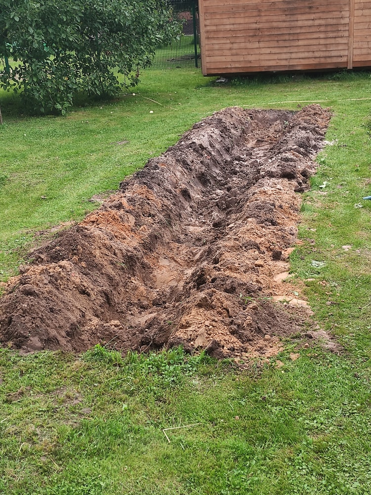 2. Выкопать в середине траншею, скидывая землю по краям.