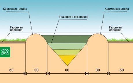 4 в траншею скидывать любую органику , периодически присыпая землей (не обязательно)