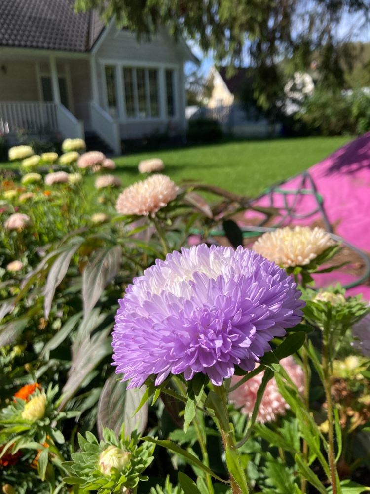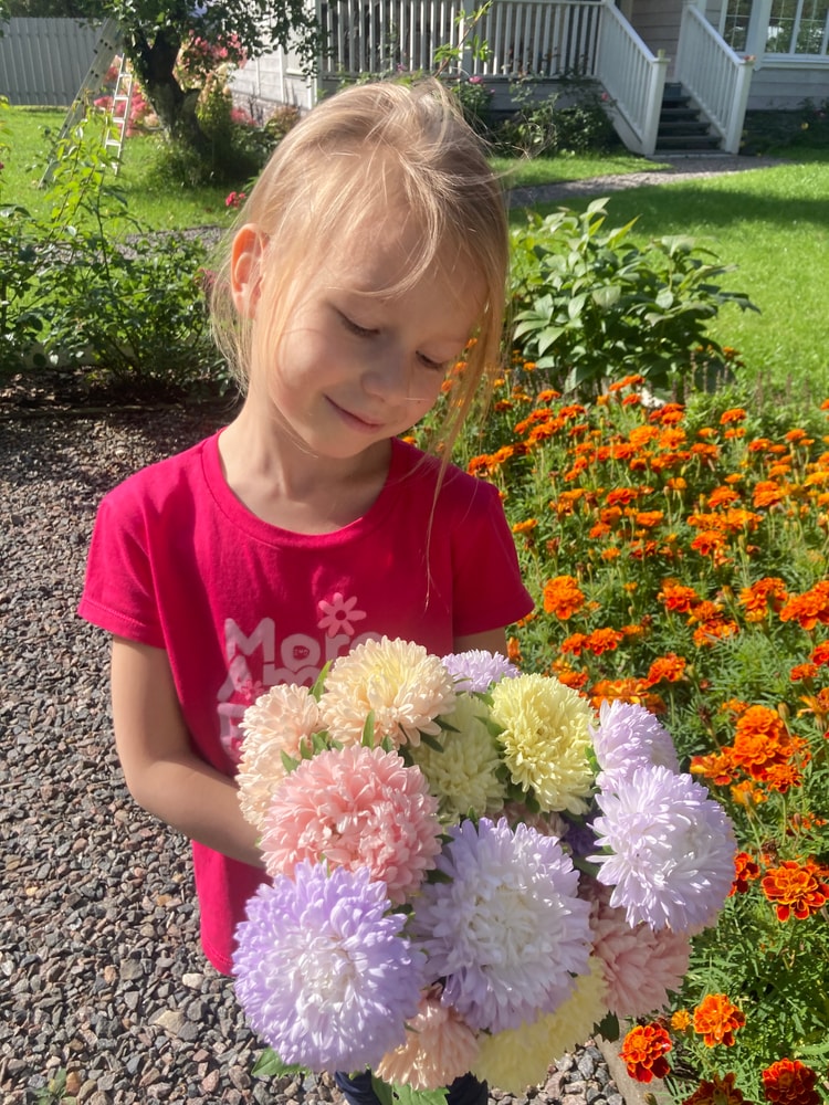 Бабушка мне всегда делала букет из своего палисадника, только у её астр был насыщенный цвет.