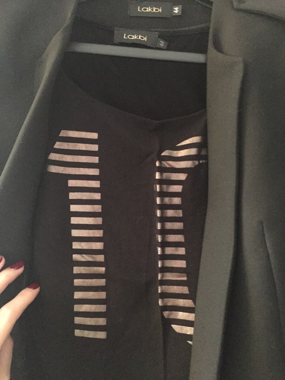 Костюм из трех предметов (пиджак, юбка, кофточка) фирмы Lissana (Брест, Беларусь), р.44-46. Пиджак и юбка на подкладке. Рост 164 см, ОГ - 88 см,ОБ-96 см. -1000 руб.