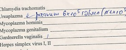 Здравствуйте, у Вас обнаружена Ureaplasma parvum в степени роста 6х10 в пятой степени, допустимый титр 1х10 в 5 степени. Требуется лечение...