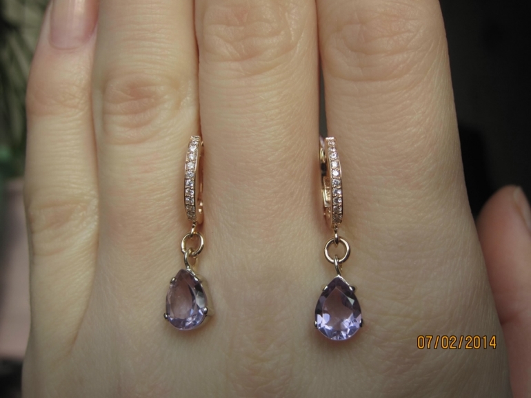 Пристраиваю серьги. Золото 585 пр. с аметистом. Пломбы не сняты. Новые.