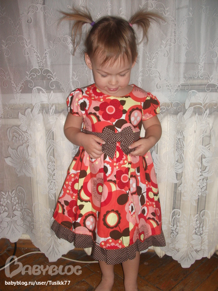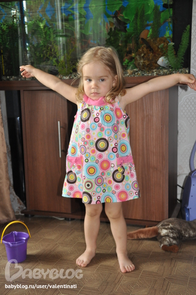 Платье, размер 4, беру на вырост, но уже бы если честно и сейчас бы умудрилась надеть, засчет завязочек у этих платьев сзади :) Подол платья двойной! Есть запас в плечиках, на фото вроде видно что довольно таки свободно. Рост ребенка 96, в меру упитанные)) Хвостики - крысеныши еще пока ) далась в третий раз в жизни сделать для этой фотосессии ))) и не снимала на сей раз до самого сна аж