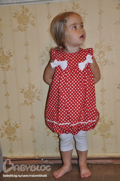Сарафан на 24/36 мес.он великоват нам,там ещё трусики есть они нам вообще в года 4 нормально будут.Нам сейчас 2 года 1 мес,мы худенькие рост 90 примерно.