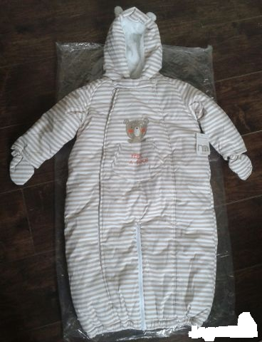 Комбинезон/мешок mother*care. Утеплитель искусственный мех. Можно использовать как мешок, ножки закрываются на кнопки или с помощью молнии сделать обычный комбинезон. В комплект идут "варежки" (без пальчика) Размер 6-9 мес. 1400 руб
