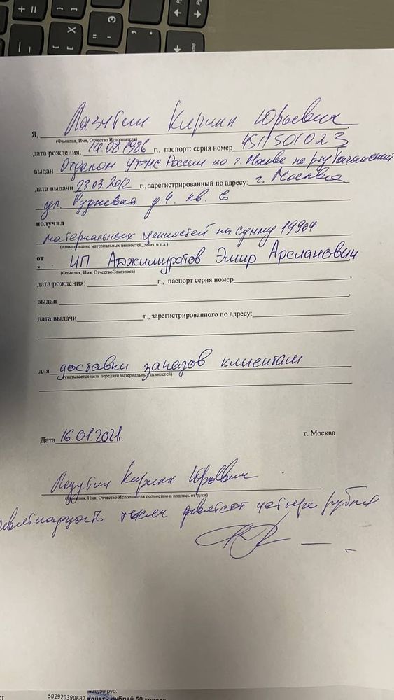 Лазутин Кирилл Юрьевич +79771634944 (фото паспорта, фото авто, фото расписки прилагаю)