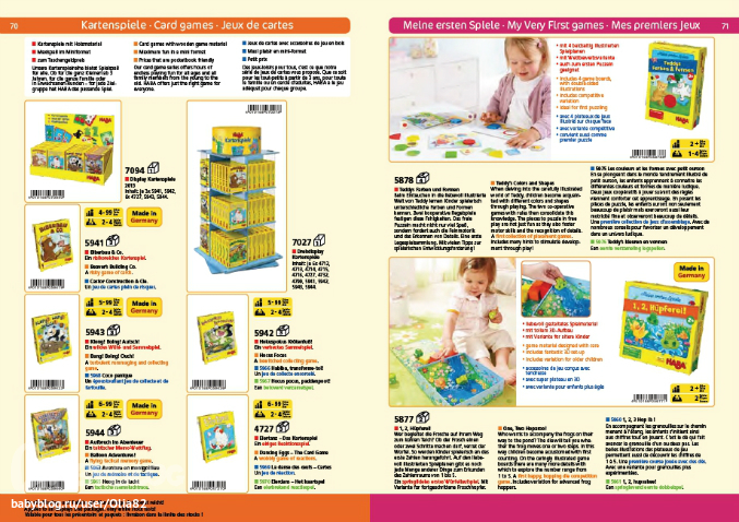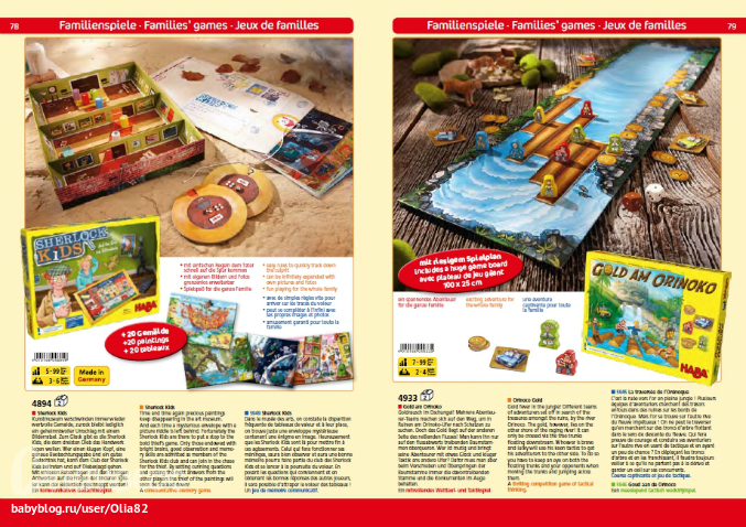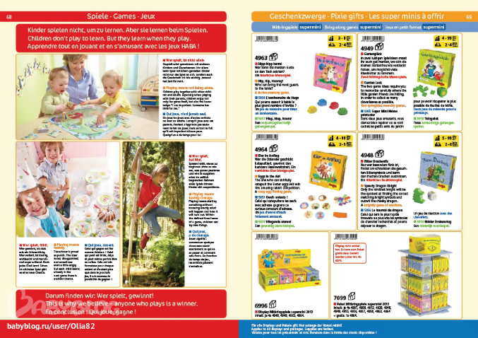 Здравствуйте, меня зовут Ольга. Предлагаю закупку мягких, деревянных игрушек, мягконабивных кукол, настольных игр, и много-много всего... немецкой фирмы Ha*ba.