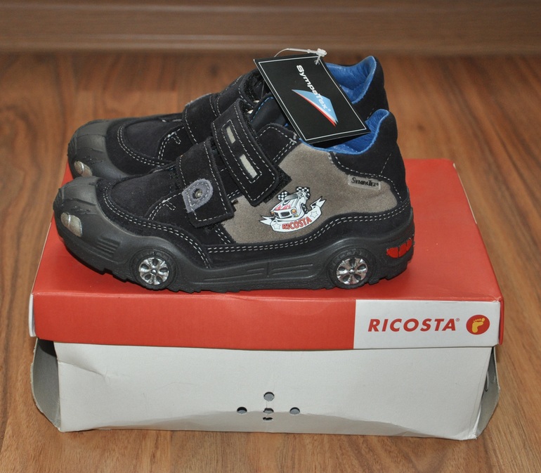 новые в оригинальной коробке осенние ботиночки Ricosta, серия "Машинки" (сейчас уже очень сложно найти). Мембрана (обувь дышит и не промокает), при ходьбе мигает синий огонек на нижней липучке. 100% натуральная замша, неубиваемый мыс. Размер 29. Цена всего 4300 руб (покупала за 80 евро + доставка из Германии). Сейчас такие ботинки на авито б\у стоят около 3000 тысяч. Причина продажи - переросли.