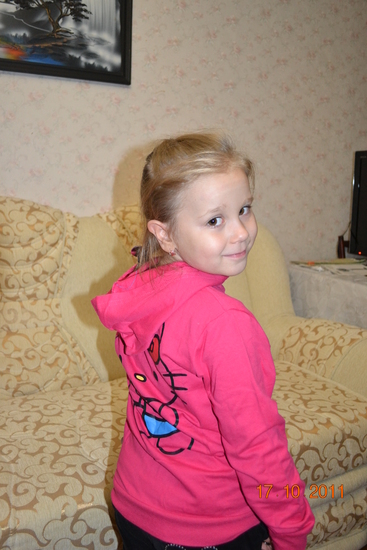 Толстовочка тоненькая,на теплую весну-осень.Размер 120,у модели рост 113,5 см.Немного великовата в плечах и длине рукавов.Ну как раз к весне будет хороша)