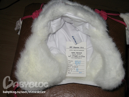 Добавлю про модельку. Тут видно как сделана шапка внутри. По голове хб ткань. На ушках мех. утяжки нет. На ОГ 49 взяли р.50-52. Чуть-чуть есть запас в глубину, примерно на 1 см. Но я так и хотела. Да и это не заметно, просто щёчки немножко закрыты. Оля спасибо!