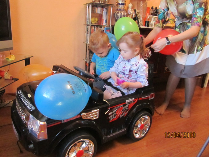СПАСИБО огромное за машинку!!! Мы БЕЗУМНО довольны!!! Наконец-то выбрались покататься на улицу! Дочка (ей 3 года и 3 месяца) прекрасно справилась с управлением: и лужи объезжала, и в очень узкие пространства САМА заруливала... Сын сидел, смотрел по сторонам и НЕ пытался вылезти (что для него не характерно!..). В общем, мы счастливы!!!ДА! Машинка большая, в седан еле-еле в салон влезла в разобранном виде... Хорошо, что мы свою машину поменяли, а то, и не выехать было бы никуда!!!...