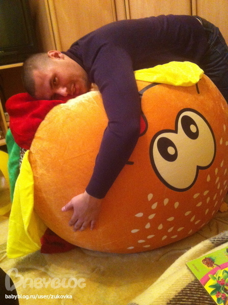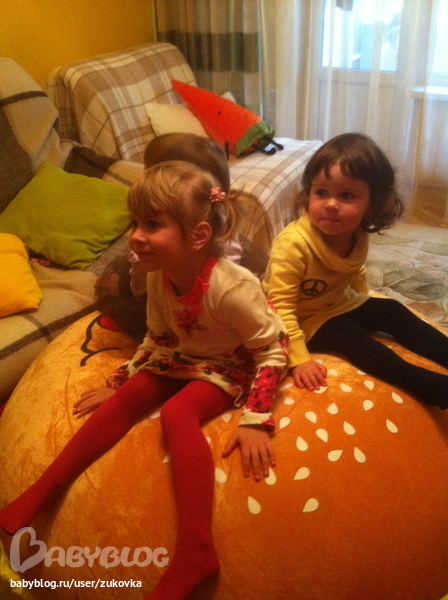 Спасибо огромное за пуф! Сегодня нам Дед Мороз принес пуф-гамбургер. Это что-то))) в восторге все)) выдерживает нааамногооо больше 70кг. К сожалению, фотографии не могу выставить, только рассказать - прыгали на него и дети, и взрослые, играли, кто дольше баланс выдержит сидя, лежа, под конец младший сын уснул на нем ...))) классная штука, необычная и полезная, реально, как фитбол.