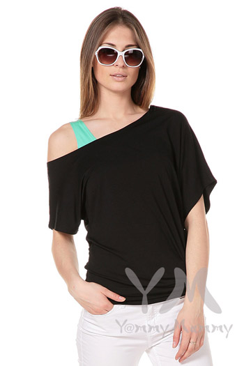234*1*3 Блуза на одно плечо из модала черная Размер 44 1100р с орг